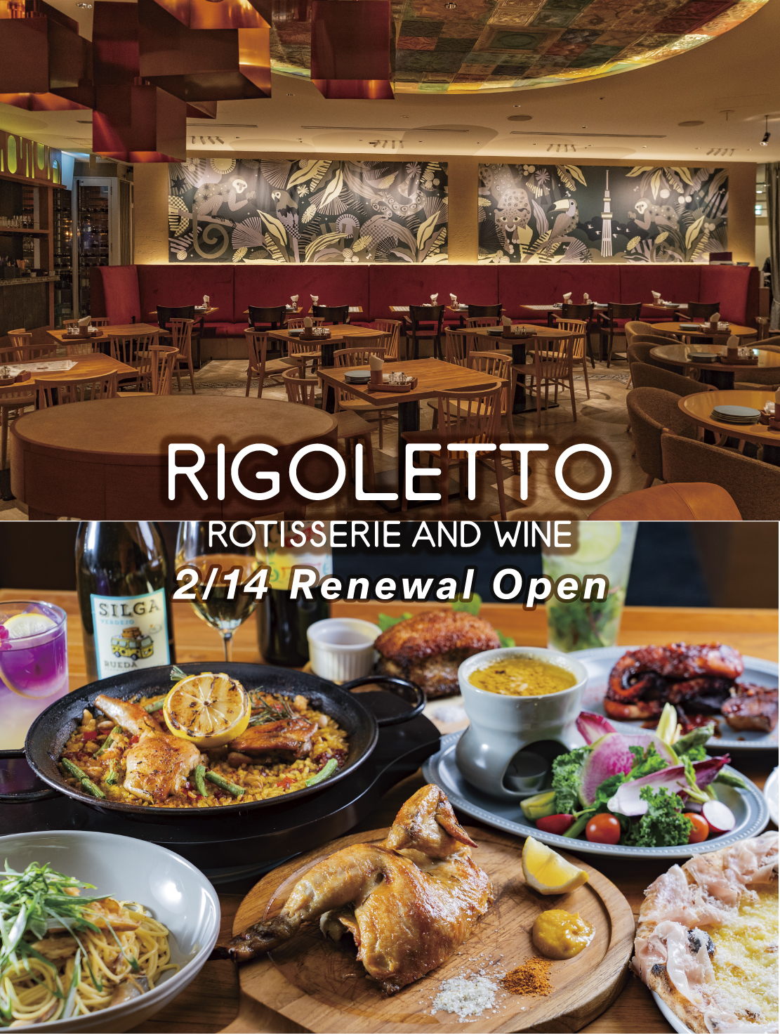 【Oshiage, Tokyo Skytree Town®】 RIGOLETTO ROTISSERIE AND WINE Reopens with a Brand-New Interior and Menu