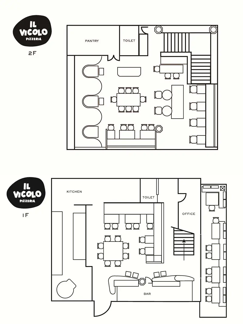 IL VICOLLO stands in a quiet little alley of Nakameguro with two distinct floors—an open, airy first floor with a terrace and a cozy, relaxed second floor.