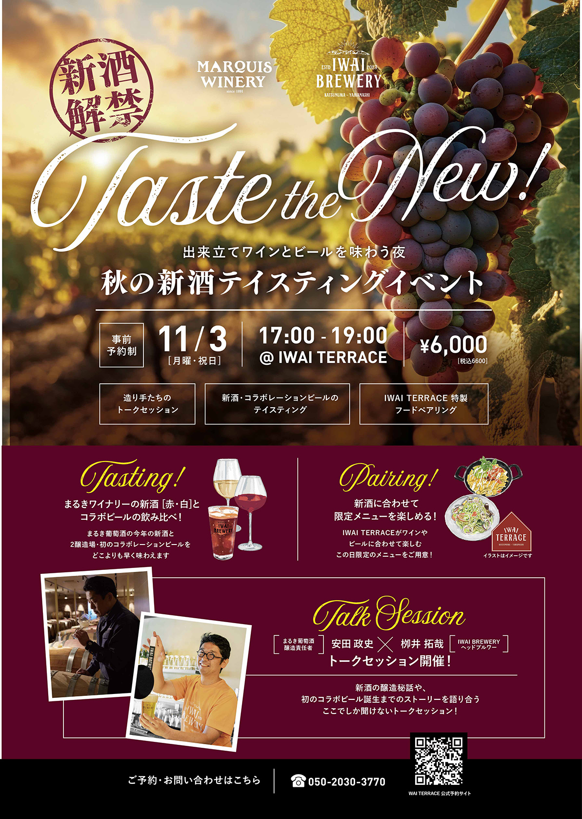 【IWAI TERRACE / 勝沼・山梨】秋の新酒【ワイン&ビール】テイスティングイベント開催!