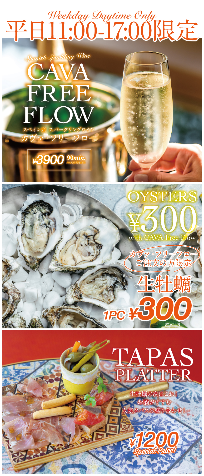 さらにカヴァと相性抜群のオイスターも、フリーフローをご注文のお客様限定で特別価格 1pc ¥300(税込¥330) にてご提供いたします。