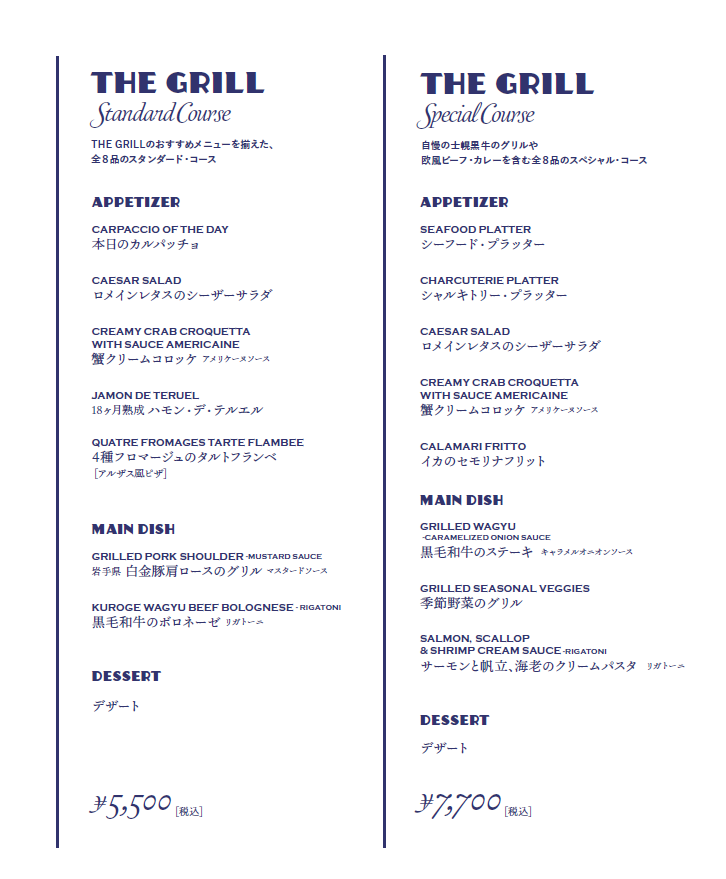 臨場感あふれるオープンキッチンから届くグリル料理や、スタイリッシュで開放的な空間が、特別な時間を演出します。