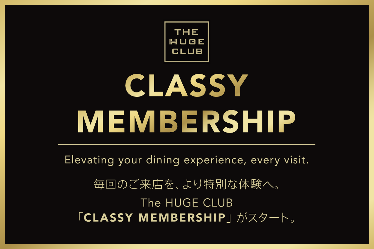 The HUGE CLUBにご登録いただくことで、CLASSY MEMBERSHIPを通じて、ご来店のたびに広がる新しい体験をお楽しみいただけます。