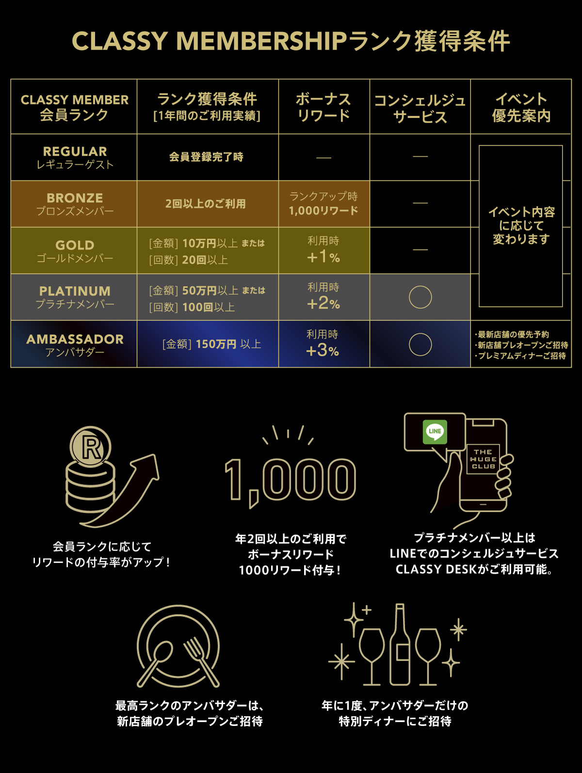 > The HUGE CLUB ウェブサイト会員ランクプログラム CLASSY MEMBERSHIPについて